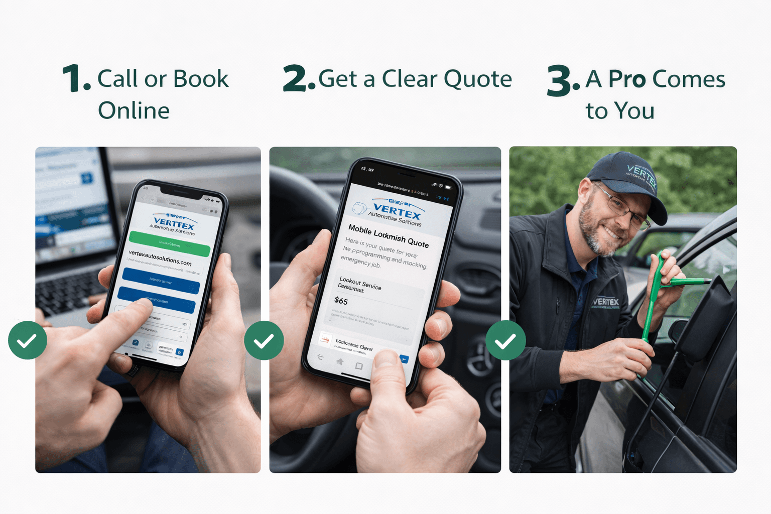 Vertex Automotive Solutions LLC is a mobile automotive locksmith and does not operate a public storefront. Services are provided by appointment throughout Mid-Michigan, including Alma, Mt Pleasant, Midland, Saginaw, Breckenridge, St. Louis, Shepherd, Ithaca, and surrounding areas.